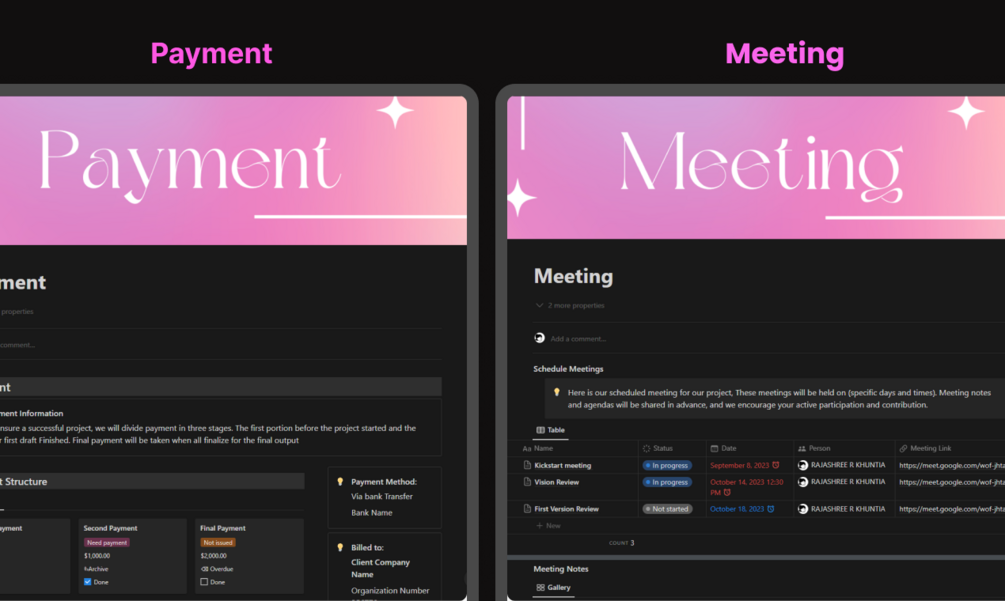 Provide your clients with a better working experience by inviting and managing their projects and work in this client portal. This notion template will be the main central dashboard and probably the only dashboard you will need while working with your clients. This can be the best document and project-sharing workspace. This template will be highly efficient in decreasing your workload by increasing your productivity, You will no longer need to go back and forth with emails, text, etc All can be done here within the dashboard by just using the comments feature available in the dashboard. This notion template will help you simplify your workflow, improve your productivity, and Strengthen relationships with clients.